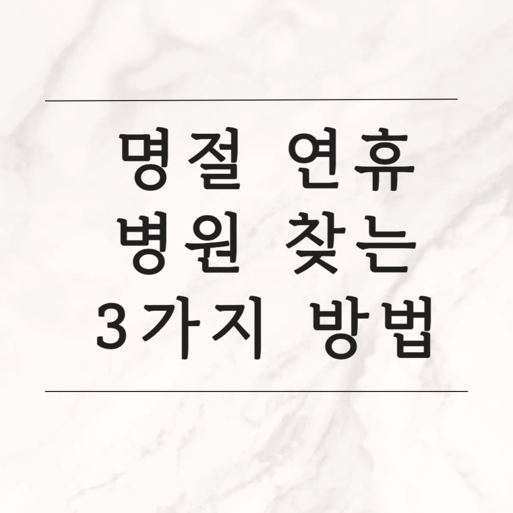 명절 연휴 동안 병원을 이용해야 할 일이 생길 경우를 대비해 미리 정보를 준비해 두는 것이 중요합니다. 위에서 소개한 방법들을 참고해 명절 연휴에도 가까운 병원을 신속히 찾아보세요. 모두가 건강하고 안전한 명절을 보내시길 바랍니다!